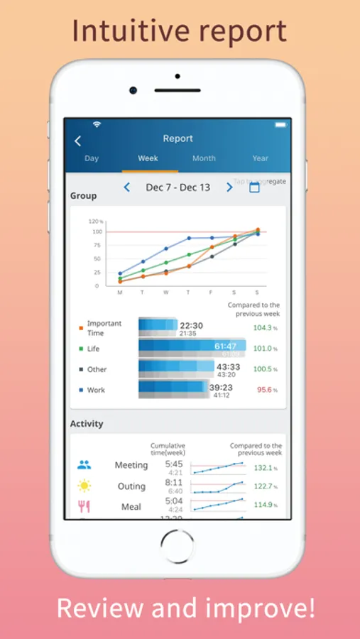 The recorded time is graphed in real time. Since it is always displayed in comparison with yesterday or last week, you can intuitively grasp "what kind of state / condition you are in now" with a touch.