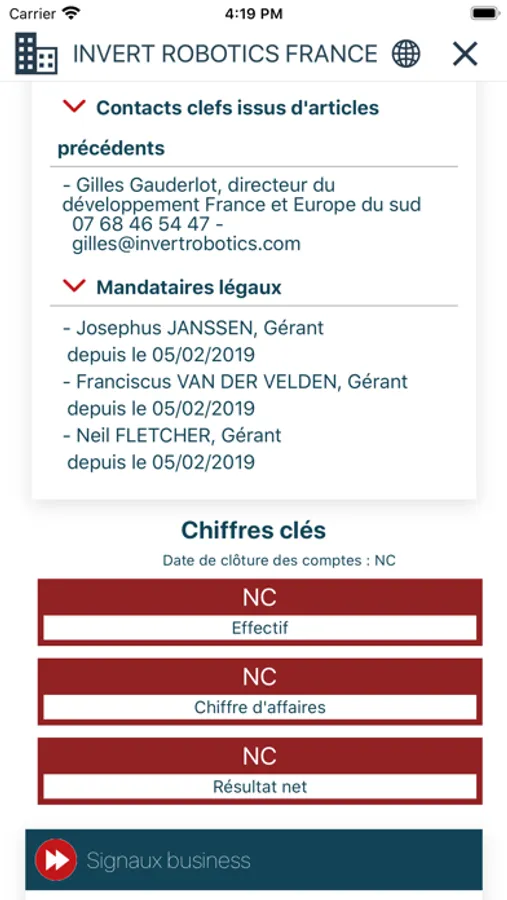 Leads Prédictifs® : Un signal d’affaires peut engendrer de nombreux potentiels projets à l’avenir. Leads Prédictifs® est une fonctionnalité ultra-innovante qui détecte les signaux précurseurs de ces projets pour vous permettre de vous positionner avant vos concurrents ! Développez une véritable stratégie commerciale prédictive et prenez un temps d’avance [fonctionnalité disponible avec l’offre Performance]