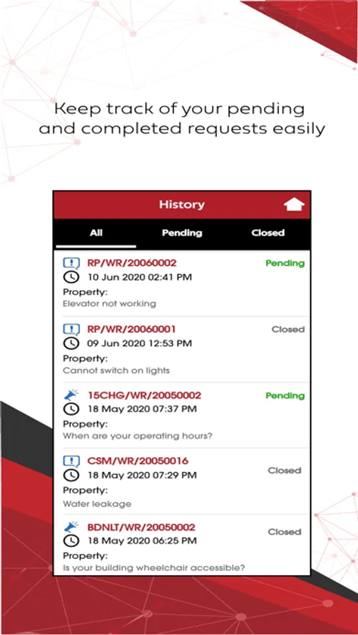 • Track status and closure of the cases submitted, which are updated regularly by our FM Team on-site.