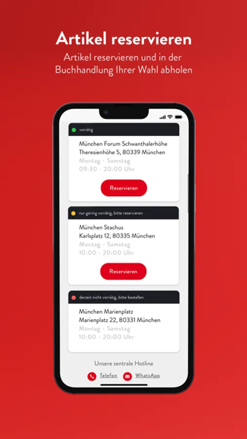 Filialverfügbarkeit prüfen: Sie wollen nicht warten? Natürlich können Sie auch jederzeit die Filialverfügbarkeit einzelner Artikel überprüfen, die Artikel in einer unserer Filialen reservieren und sofort abholen!