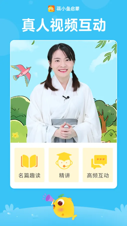 荷小鱼启蒙——唤起兴趣本能,让孩子多元成长!荷小鱼启蒙是由腾讯、创新工场联合投资推出的一站式兴趣启蒙在线内容平台,采用AI智能互动技术,致力于为孩子提供优质的兴趣启蒙内容。