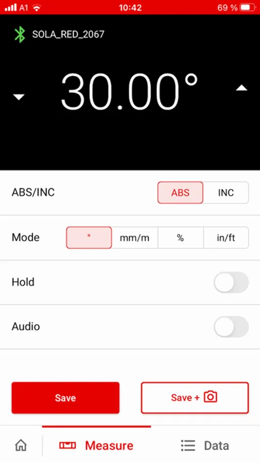 You can remotely control the important measurement functions of your measurement tool via the SOLA Measures app. If, for example, you are measuring inclines, slopes or angles while using the app, you can select whether the measured values are displayed in degrees (°), percent (%), mm/m or in/ft. You can also ‘freeze’ the latest measured values with the ‘Hold’ function and angles can be easily transferred with the ‘Inc’ function. The acoustic signal guide can also be switched on via the app, something that is extremely useful when levelling objects.