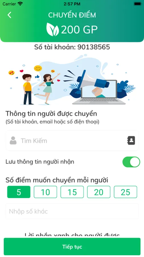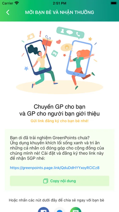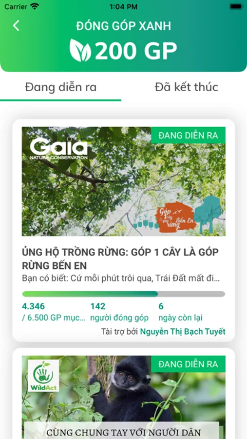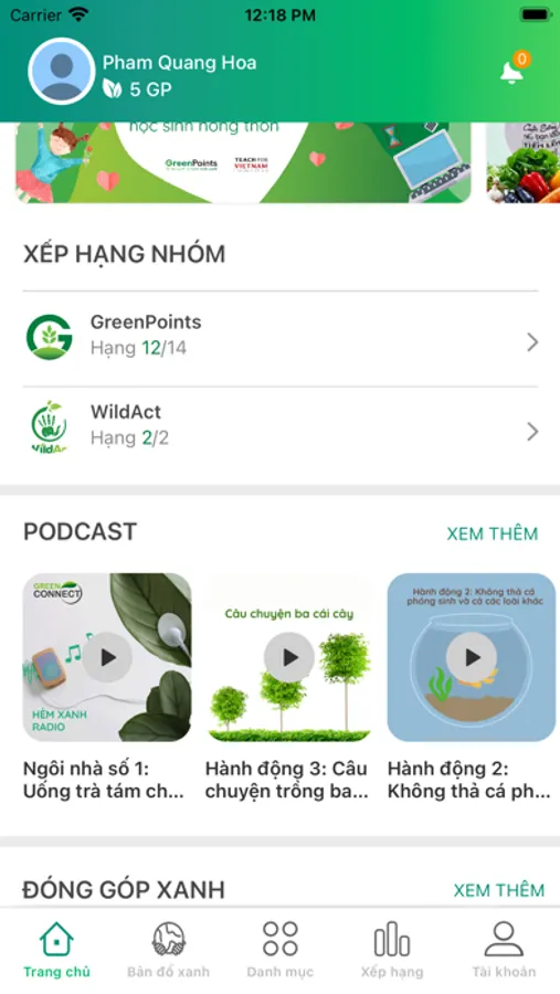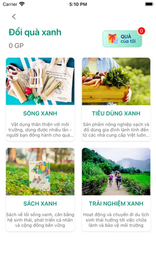 - Xanh trong vòng tròn kết nối: tặng điểm GP để ghi nhận và khuyến khích nỗ lực sống xanh của bạn bè, người thân quanh mình.