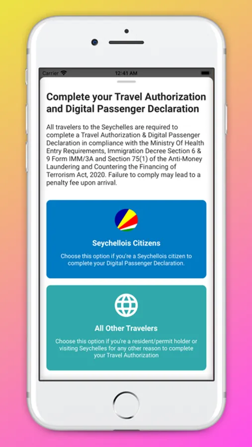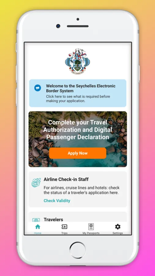 Complete all your border procedures with the official Seychelles e-Border government app.