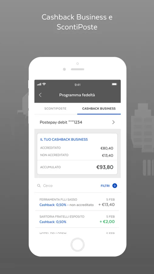 • Puoi inoltre sempre visualizzare gli importi relativi ai programmi di loyalty ScontiPoste e Cashback business.