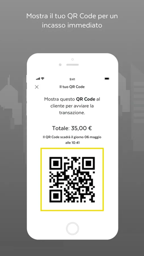 Associa all’App il QR Code che ti sarà consegnato in fase di sottoscrizione del servizio per accettare pagamenti con Codice Postepay