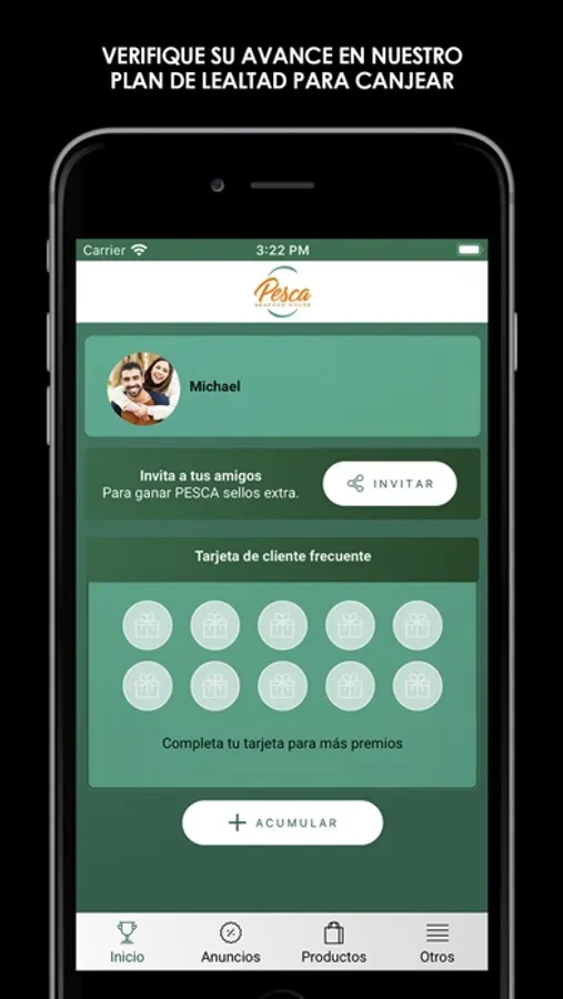 El app que premia a los clientes de Pesca Seafood House por sus visitas.