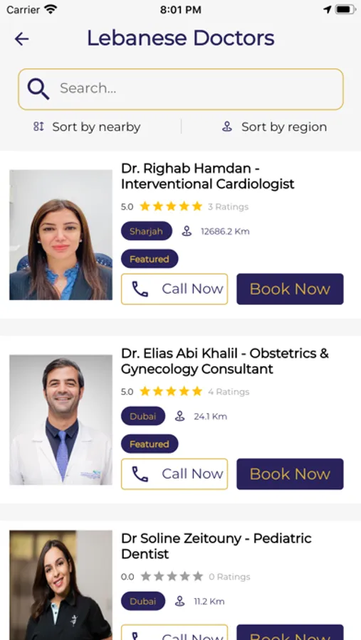 2- Lubnanona Application displays the List of Lebanese doctors that are based in UAE.