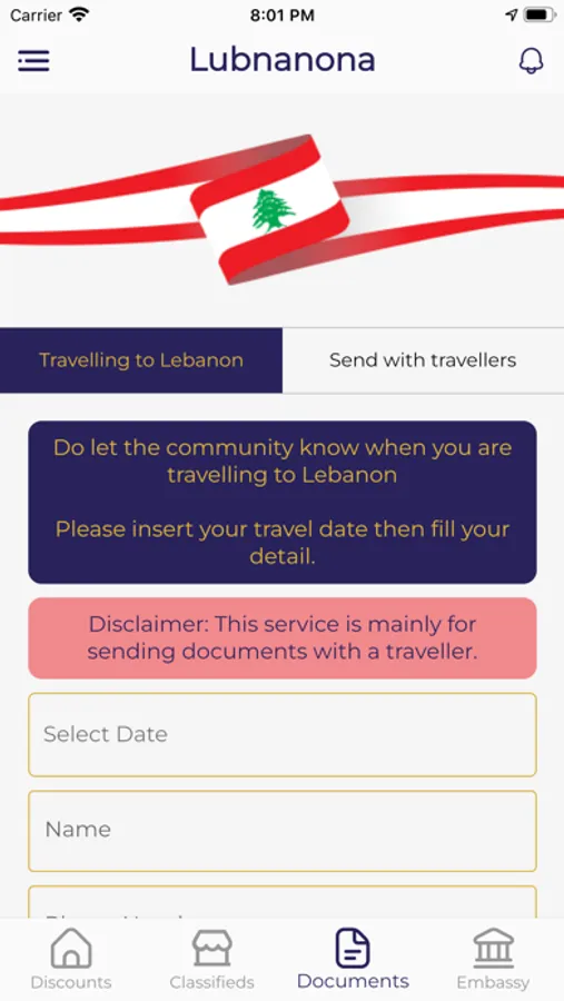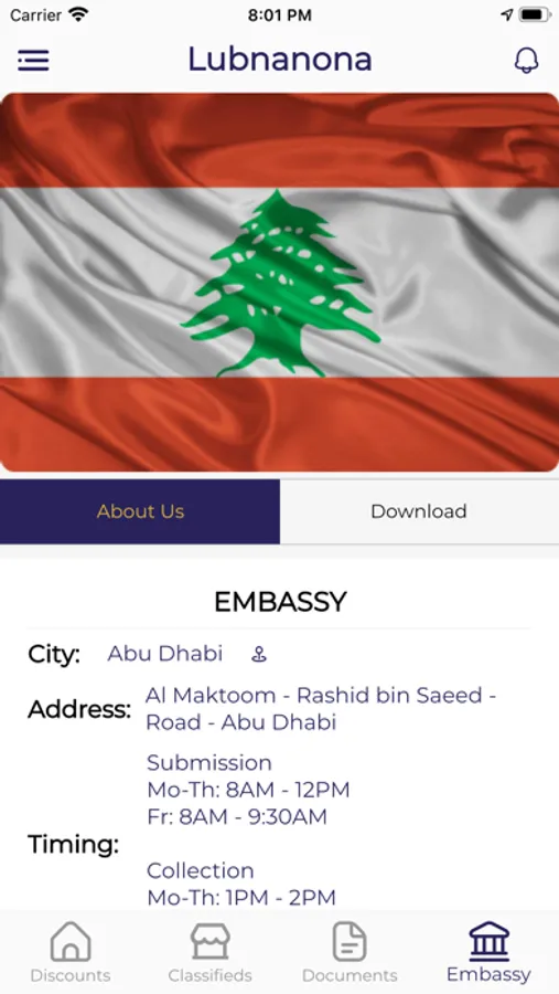 3- The app is only accessible by Lebanese in UAE (logging in through Facebook/Emirates ID)(Image does not get stored, only nationality pickup)