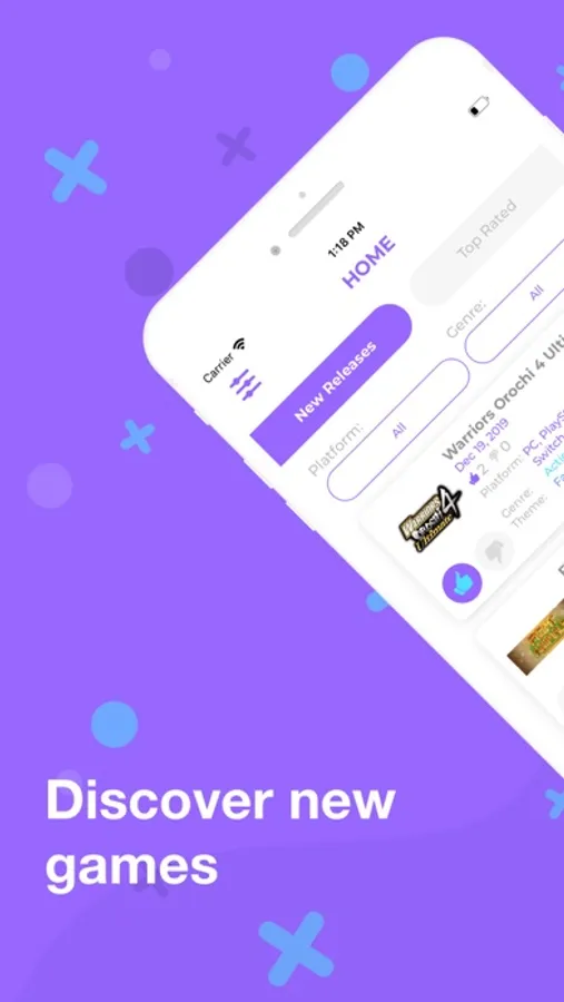 The latest games: discover new releases! It is an application designed to discover new games and keep up to date with the latest releases, from famous games to indi games that you will only find in our application. You can find games for all platforms including iOS, Play Station PS, Xbox, Nintendo, Wii. Save your favorite games, rate them, help more players play them. Discover which are the best rated games.