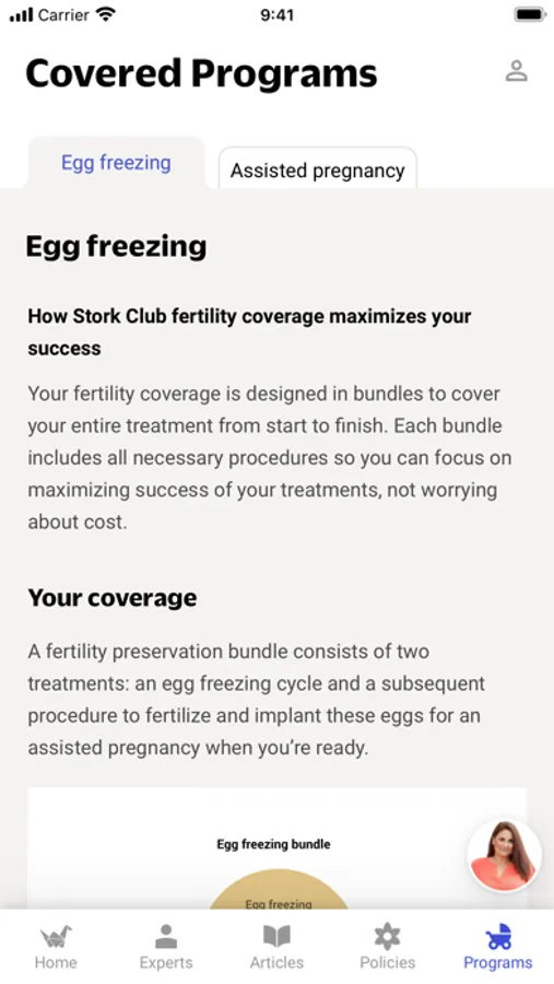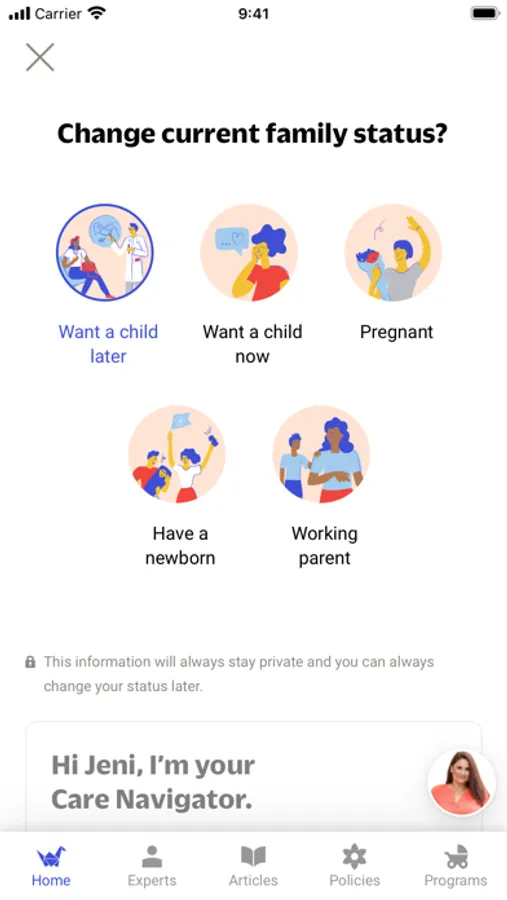 Video calls with leading fertility, maternity and parental experts, full guidance, and employer-sponsored coverage to help you create a healthy, happy family, now or later.