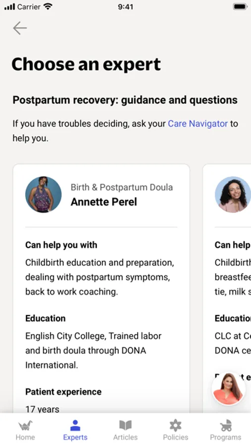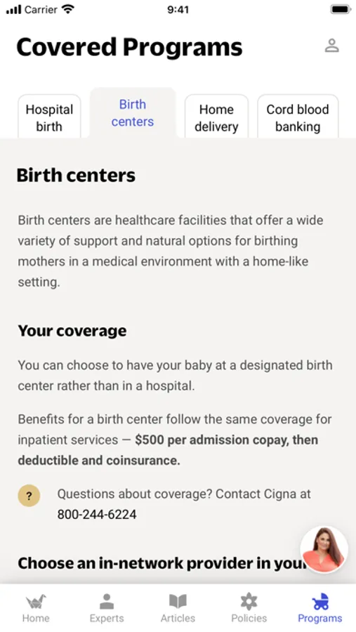 Relevant recommendations based on your current family status, including medical insights, expert calls, sponsored programs, and high-performing providers in your area — all online.