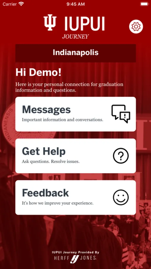 IUPUI Journey is the official, private 2-way messaging app to get personalized information and ask questions, about graduation. You will also get important info from Herff Jones about your graduation cap and gown, announcements, diploma frame and more. All your graduation info in one place where it's easy to find.