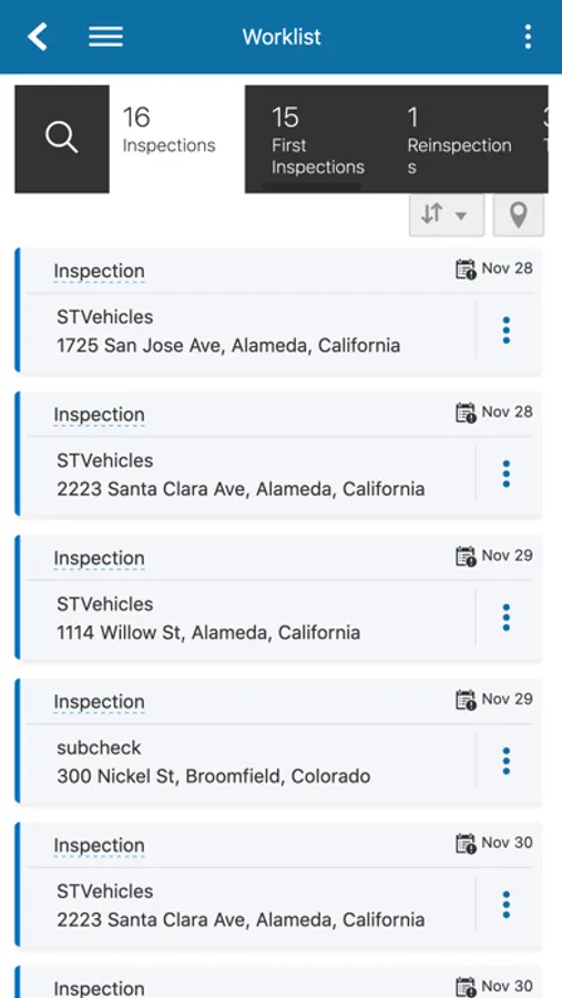 • Manage inspections with defined filters.