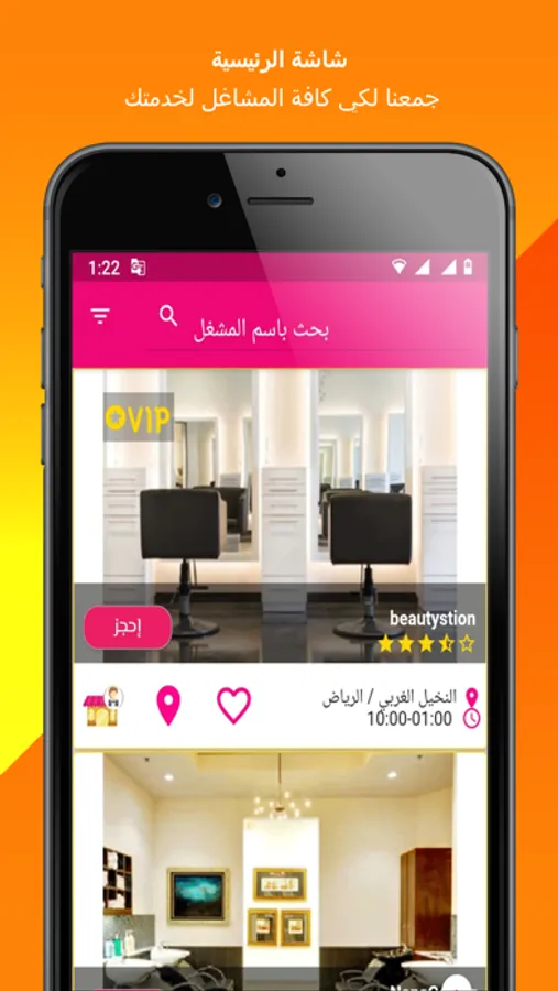 بيوتي استيشن توفر خدمة الحجز السريعه في بيتك أو قاعه الأفراح أو الفندق وبكامل خصوصيتك . فقط بلمسة واحدة تعرفي الأقرب والاعلى تقييم من بين العشرات في منطقتك.