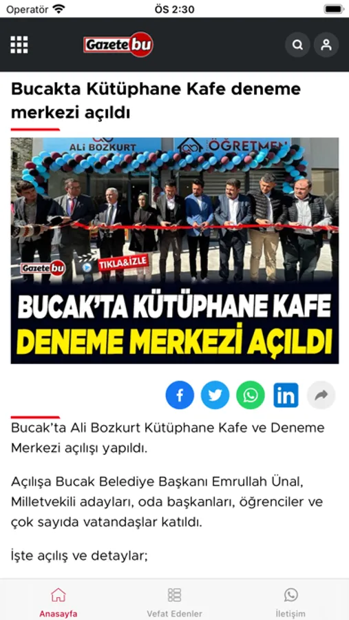 Bu uygulama ile Burdur ve ilçelerindeki tüm gelişmeleri hızlı şekilde takip edebilir, son dakika haberleri telefonunuzda yüklü tüm sosyal medya ve paylaşım uygulamalarında kolayca paylaşabilir, arkadaşlarınıza maille gönderebilirsiniz.