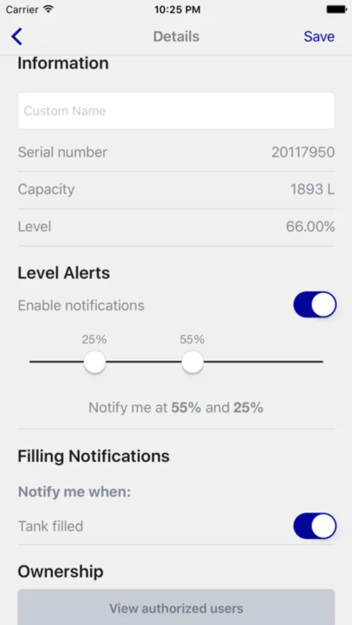 3. Receive instant notifications on your smartphone when your tank reaches configurable and pre-determined levels.