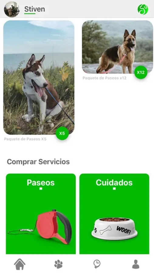 La aplicación permite solicitar el servicio de paseo de perros, el usuario puede indicar la dirección en la que quiere que recojan su mascota y el tiempo de paseo que quiere para su perro. También puede solicitar el servicio de hospedaje y cuidado de la mascota durante días.