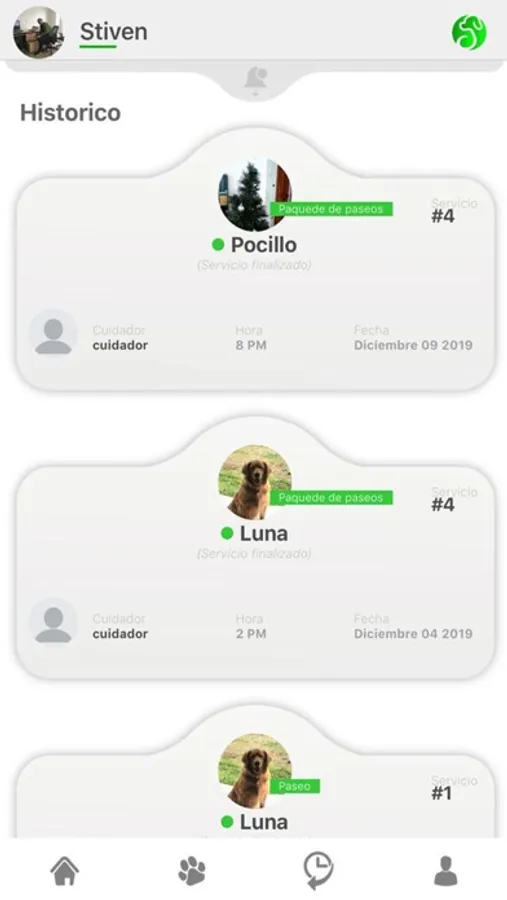La aplicación enviará notificaciones con los estados del servicio y le permitirá al usuario ver fotos que evidencian el servicio que se le está prestando a su mascota.