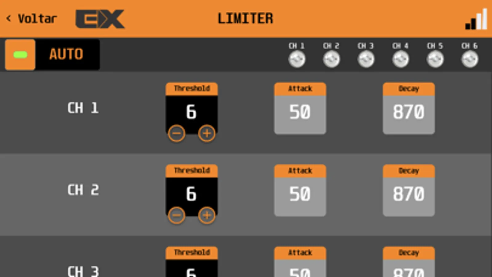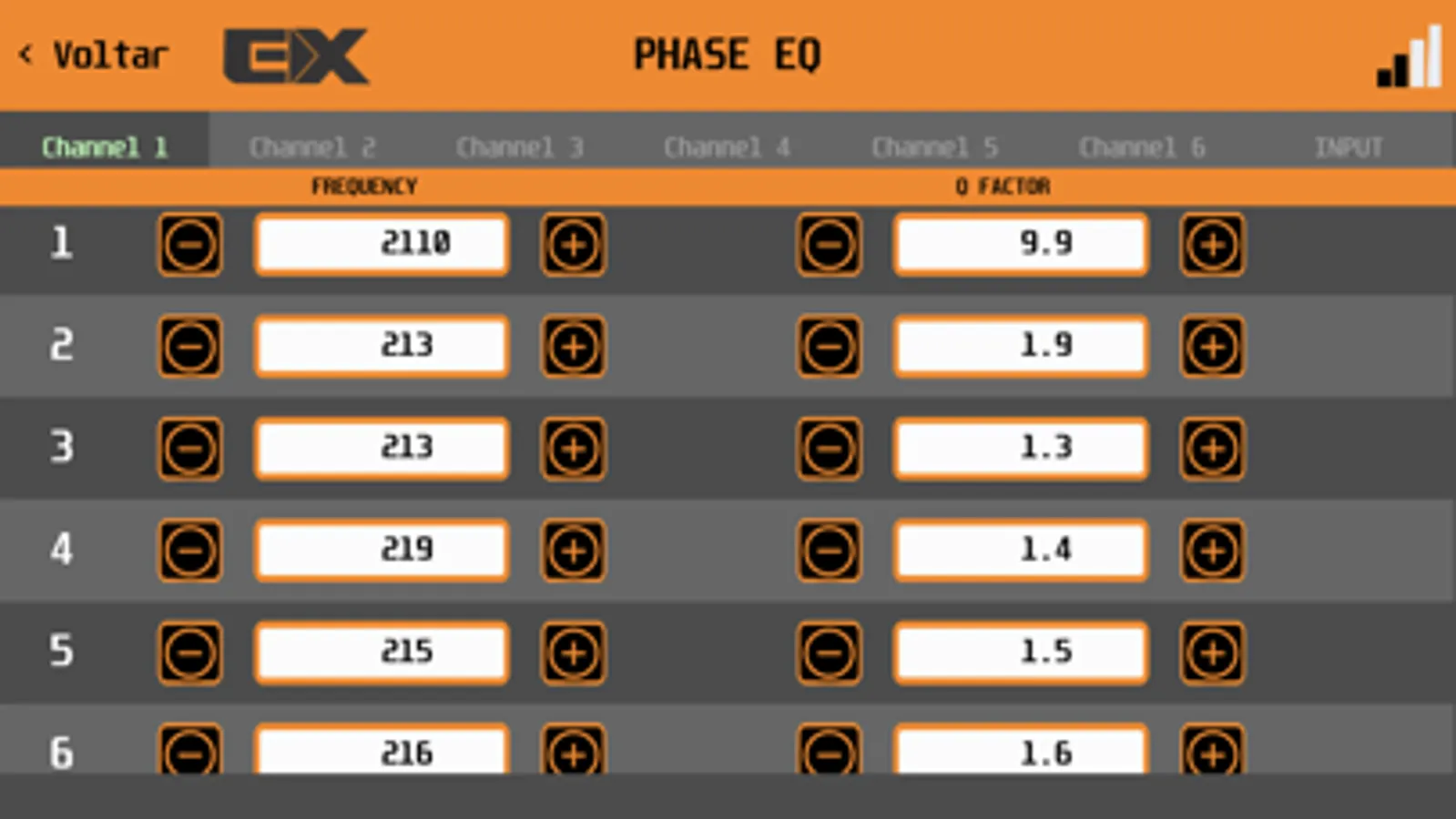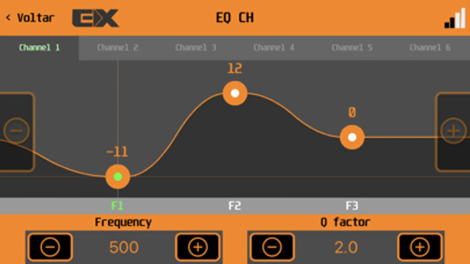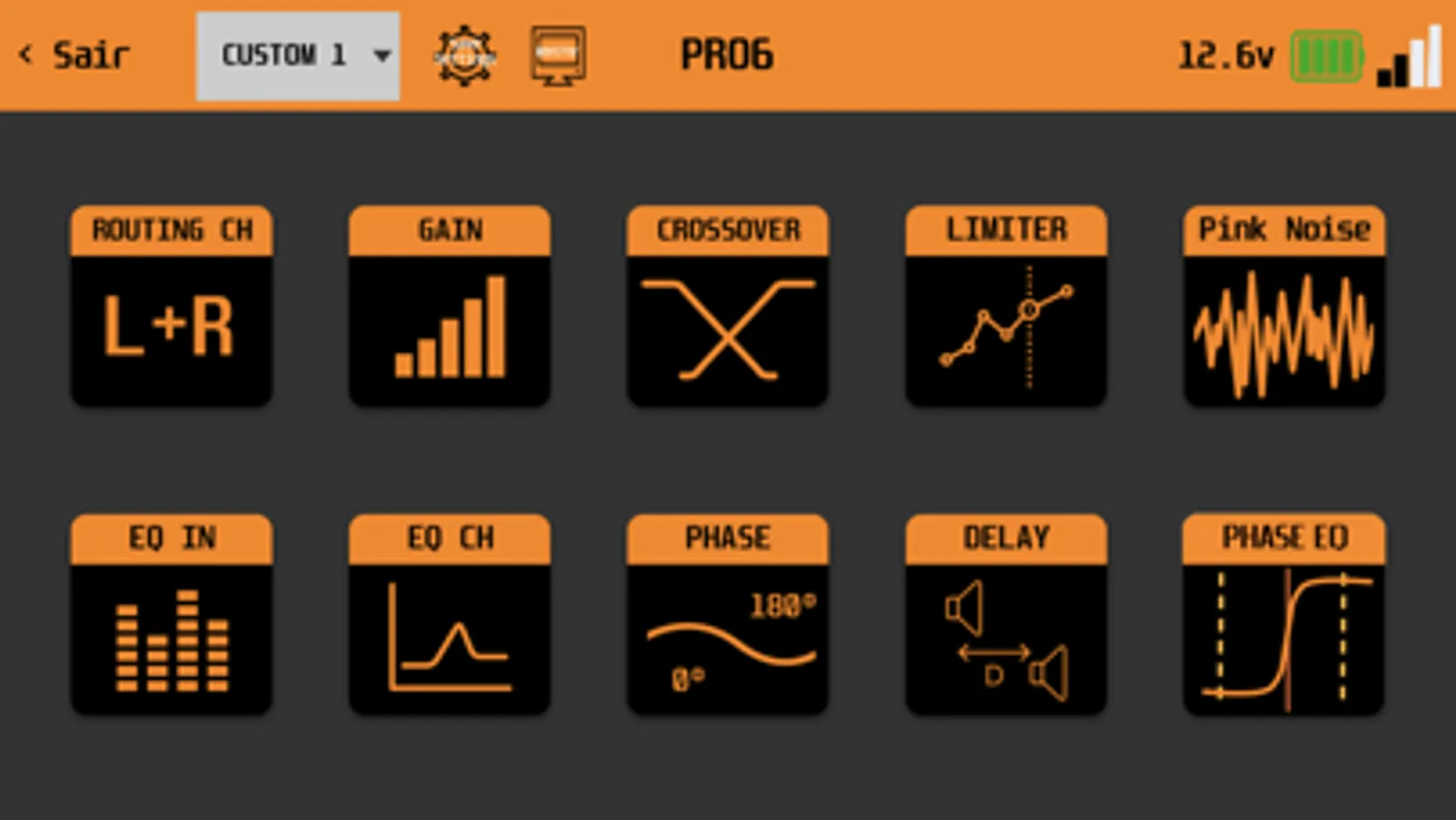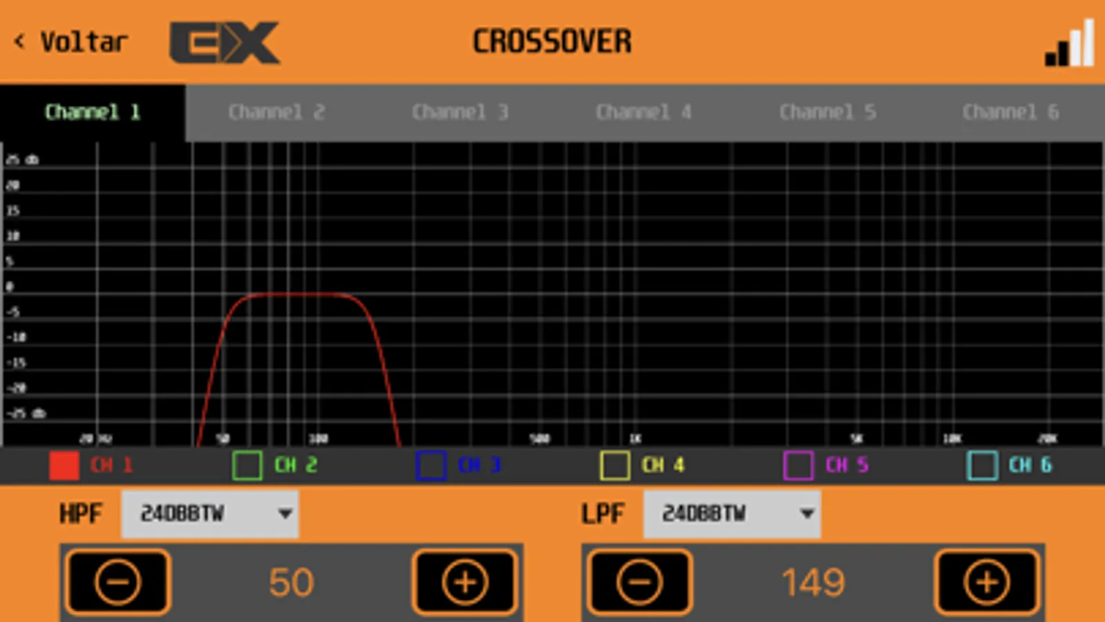 Controle do Processador de áudio EXPERT PRO configurável via bluetooth.
