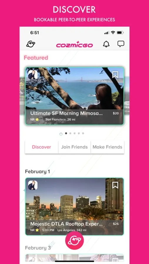 CozmicGo is the first social network for IRL activities. Activities are bookable straight from a user’s content feed. Jump in and discover how easy it is to find fun on CozmicGo.