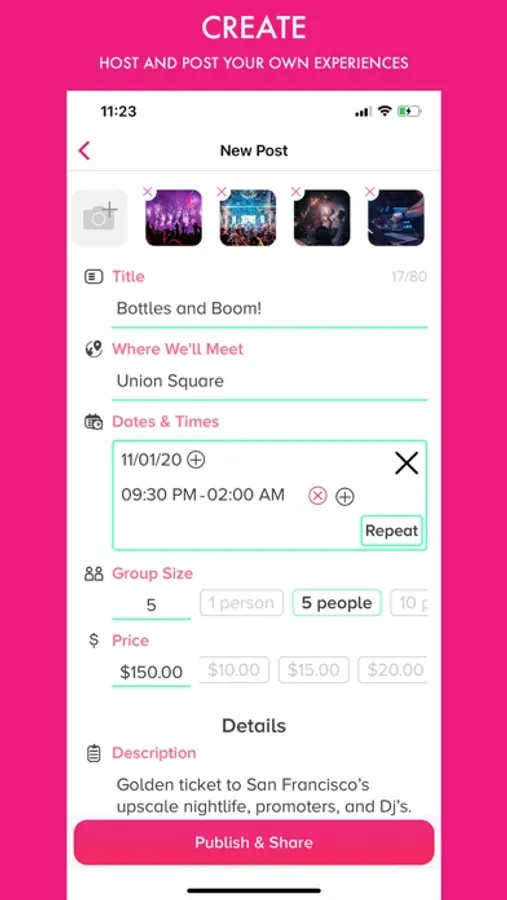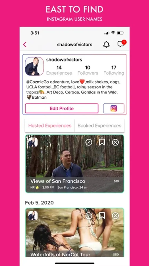 :) Create your own experiences and share them with your friends. All your amazing experiences can be shared directly to your Instagram feed.