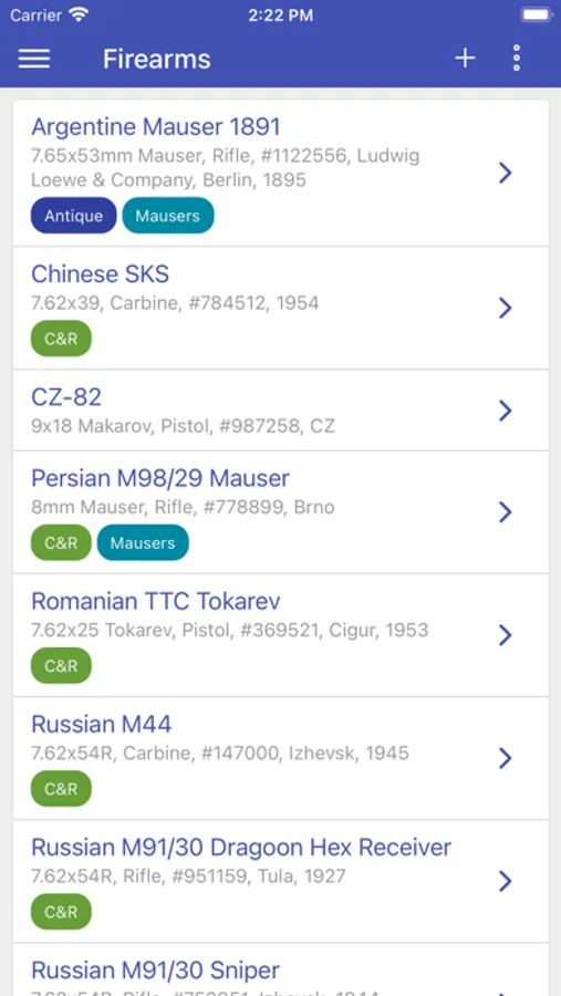 Explore a digital armory at your fingertips. Keep a detailed record of everything from firearms to edged weapons, optics to accessories, and even ammunition. Your inventory includes comprehensive item property fields, such as names, serial numbers, and user-defined tags. Plus, images can be attached to each record, allowing for quick and easy visual identification of your collection. Whether the record belongs to you, a family member, or a friend, our app puts your entire gun safe and all your gun info in the palm of your hand.