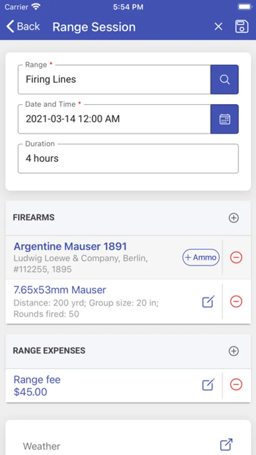 Discover the ultimate wingman for your next shooting session. Log each session by selecting a gun and ammunition from your digital arsenal, then enter the count of rounds fired for each. Our gun app automatically updates your firearm record with the total number of rounds fired and subtracts the ammo quantity from your ammo record—it's that easy! Plus, you can add photos of your best shots, enter the weather conditions, and add detailed descriptions of your performance. And once you're done, export your session as a PDF file, complete with all your data and images.