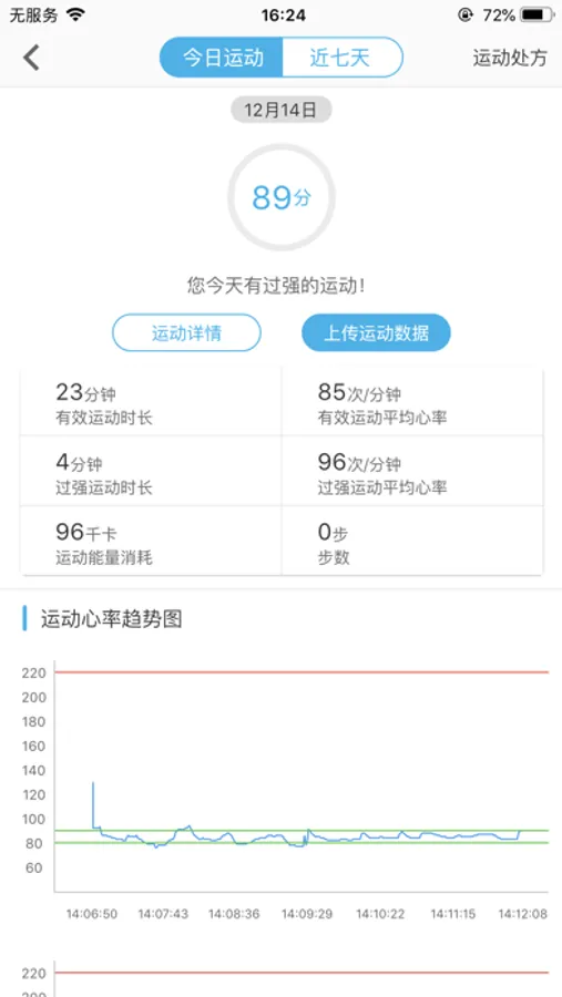 心率检测:通过手机蓝牙连接任何一款支持蓝牙4.0标准心率传输协议的心率手表或心率带(推荐使用mio),即可实时记录监测、统计分析您的心率情况,并根据专家为您定制的运动处方,计算您当日和一周以来的有效运动时间以及运动处方的完成情况。