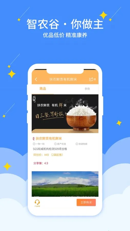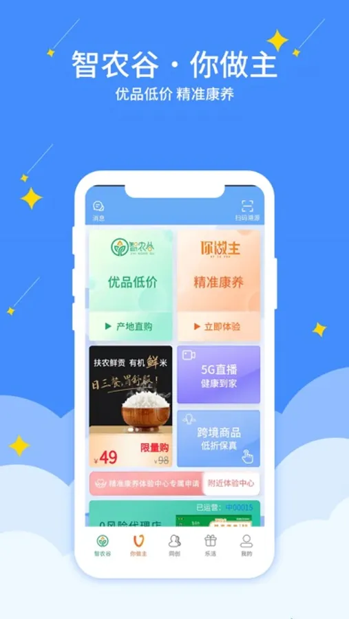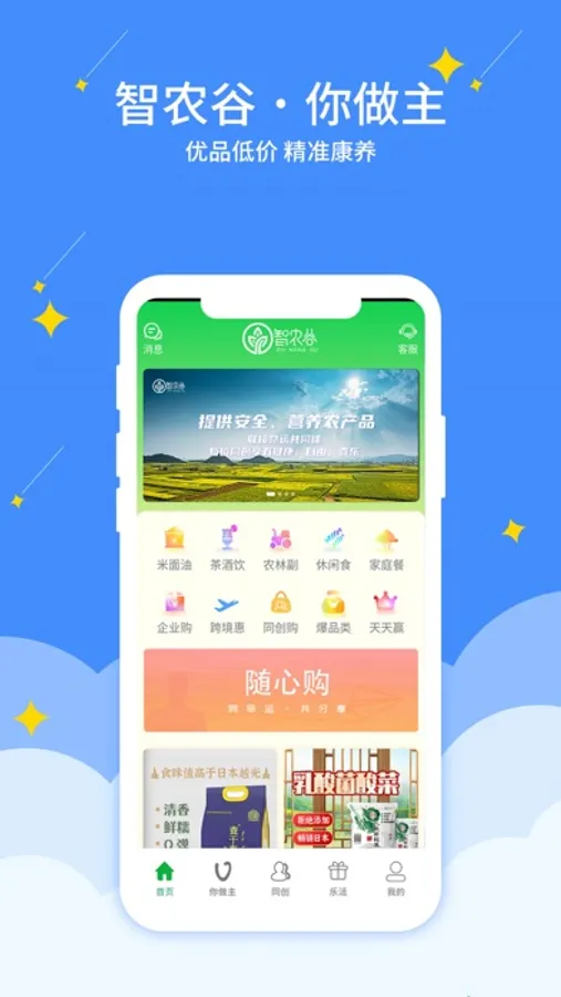 智农谷是提供安全营养农产品的app;和原产地联接命运共同体的app;目的是让每个成员享有健康、自由、喜乐!