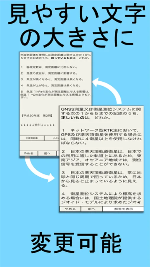 ※問題などは全てテキストデータで収録しているので、文字サイズの調整・自動フローを実現し、端末毎に見やすい文字サイズで提供しています。