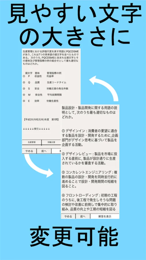 ※問題などは全てテキストデータで収録しているので、文字サイズの調整・自動フローを実現し、端末毎に見やすい文字サイズで提供しています。