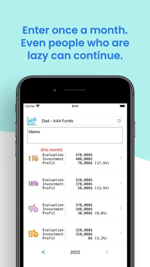 -You only need to enter the valuation amount, investment amount, and valuation gain / loss of each account once a month.