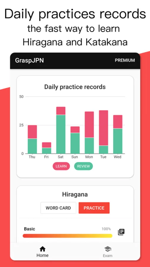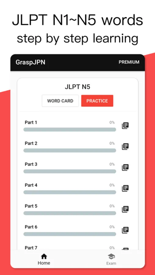 1. Hiragana, Katakana, N1, N2, N3, N4, and N5 practices.