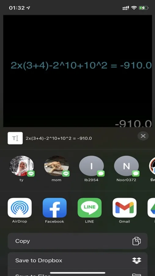 -Operators (, ), +, -, x, ÷, and ^ can combine into a long equation string. e.g.