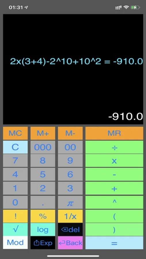 -Unary Operator: √, x!, 1/x, log10, %, Clear, Del