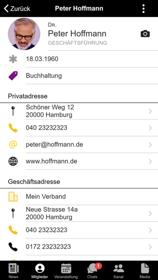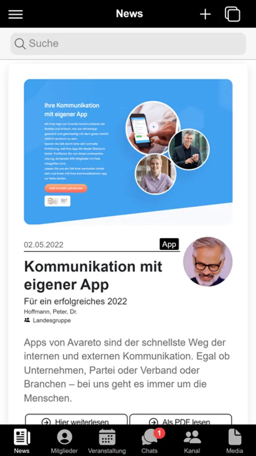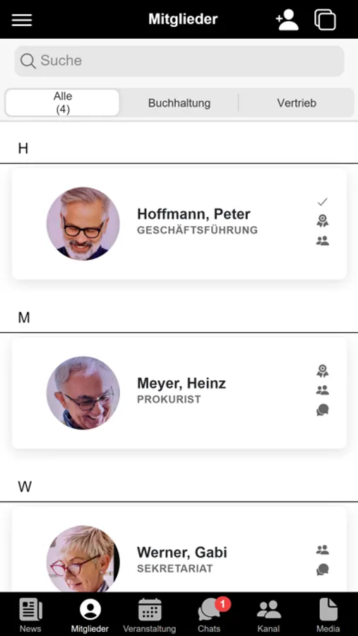 Organisieren Sie Ihr Verbands- und Vereinsleben vollumfänglich digital: Verwaltung aller Mitgliederdaten, Erstellung von Projektgruppen, Organisation von Veranstaltungen mit Zu- und Absagen, Einzel-, Gruppen und Organisations-Chat, Bereitstellung von Dokumenten, öffentliche Fotopinwand und vieles mehr...