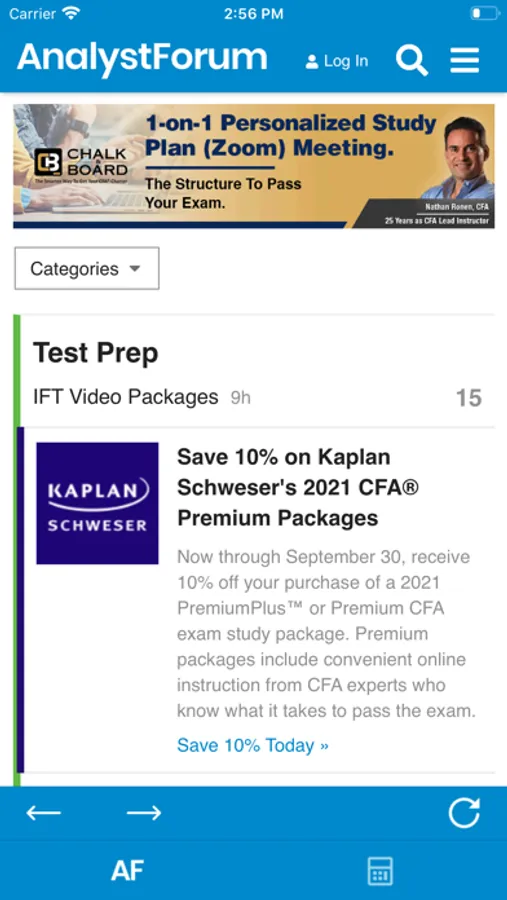 The AnalystForum app includes everything you need to pass the CFA exam with thousands of discussions between fellow CFA candidates. Search or browse discussions by exam level or topic area. Join the group for your specific exam level. Receive instant notifications in the app when another member responds to your post or sends you an instant message.