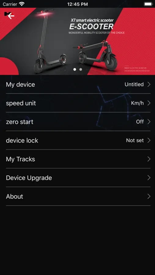 可以让用户实现电子锁车功能,打开或关闭灯光,调节档位,选择显示单位、启动方式,打开GPS导航,以及在线更新滑板车系统等功能。