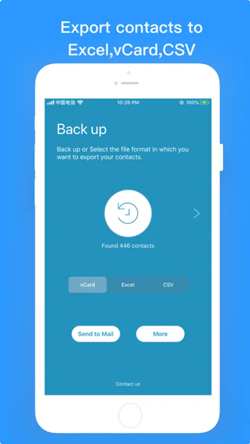 Backup and export your contacts in one single tap! Backup your contacts in iCloud and sync them between all devices. Export your contacts and send yourself as Excel,vCard or CSV format via email.
