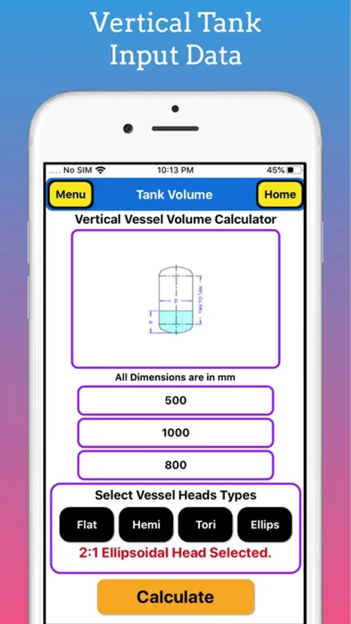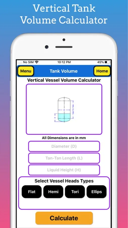 This App is developed to Calculate Horizontal and Vertical Tank Partial Volume, Full Volume with Flat Head, Torispherical Head, Hemispherical Head, Ellipsoidal Head. it is useful for calculating Volume of Storage Tank, Pressure Vessel and other Process Equipments.