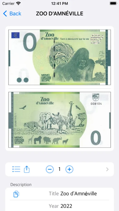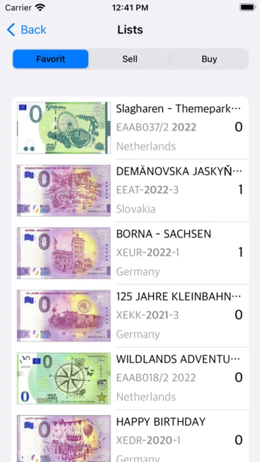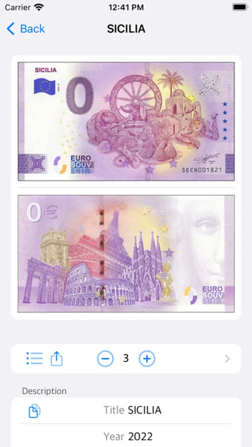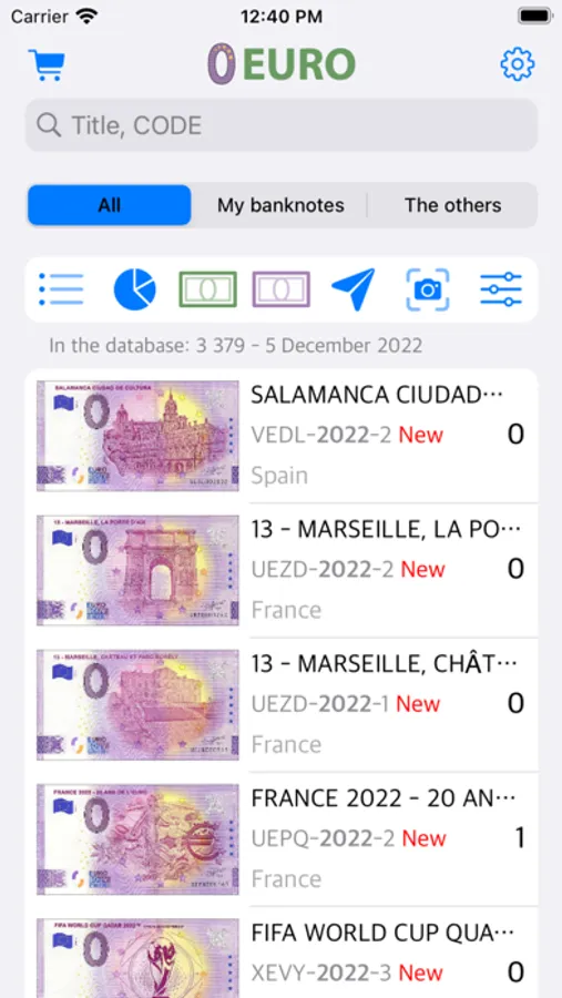 The application consists of souvenir and commemorative banknotes with a face value of 0 euros from 2015 to the present. The banknote database is updated every week.