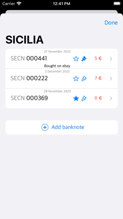 - Add your banknotes. You can specify the number of the banknote and its purchase price