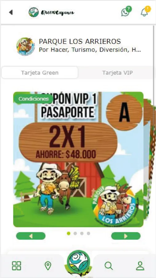 GreenCupones distribuye una tarjeta green, que permite a sus clientes acceder a los cupones promocionados en la app, esta app es informativa, tiene como fin enseñarle a nuestros clientes a que promociones pueden acceder si adquieren la tarjeta green.