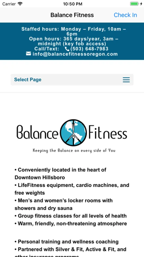 This is a basic app that will allow you to check in at the front desk with your phone, as well as quickly check the class schedule for the day. More to come, with feedback, and suggestions. Please let me know if you have any issues with the app, either by text or email to Balance Fitness, at (503) 648-7983, or info@balancefitnessoregon.com. This app was created with no professional help, so there is not much to the app yet and it is pretty basic, but hopefully I can add things as I receive suggestions!