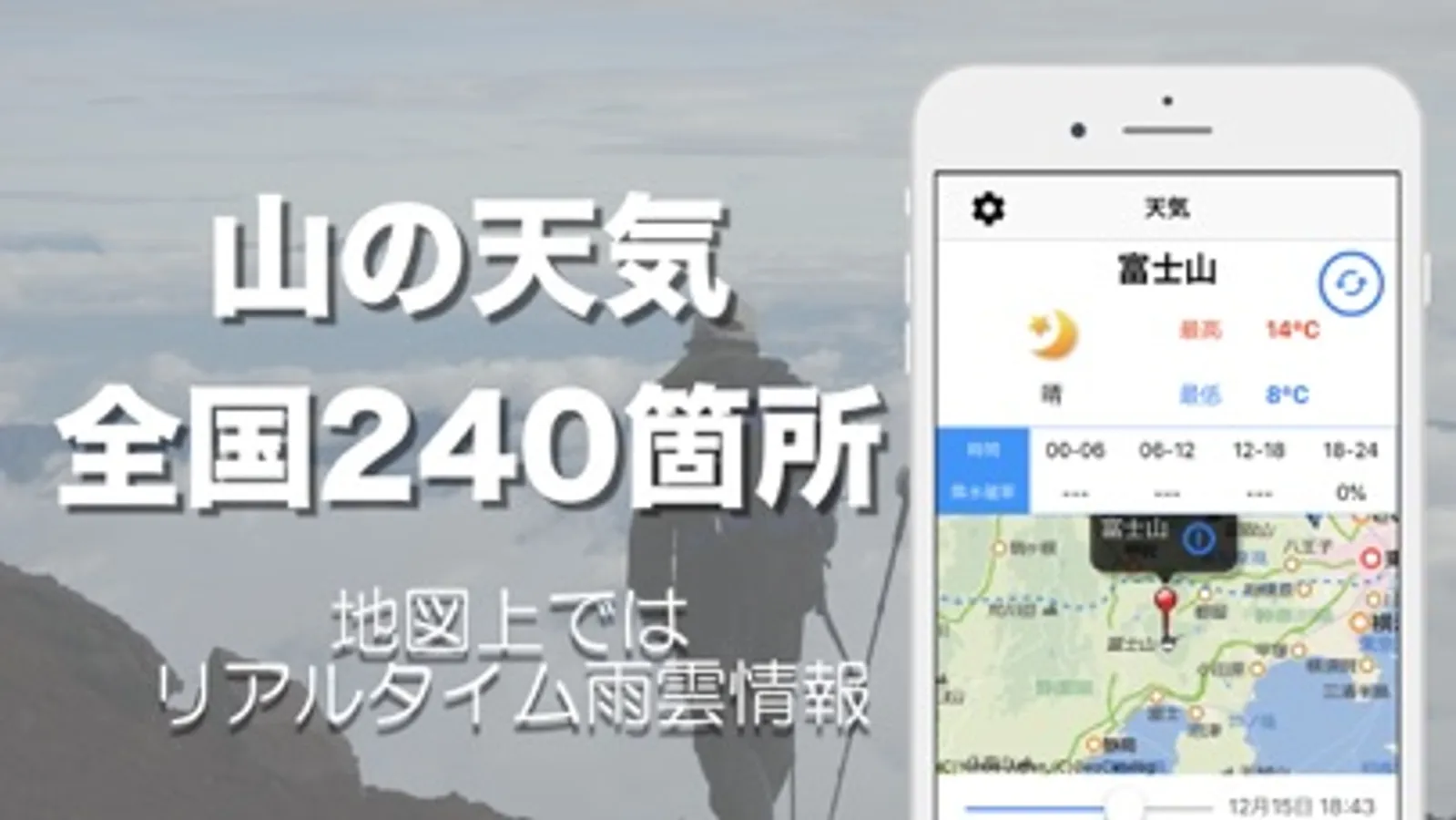全国の 山の天気情報 と 雨雲情報を表示するアプリケーションです。