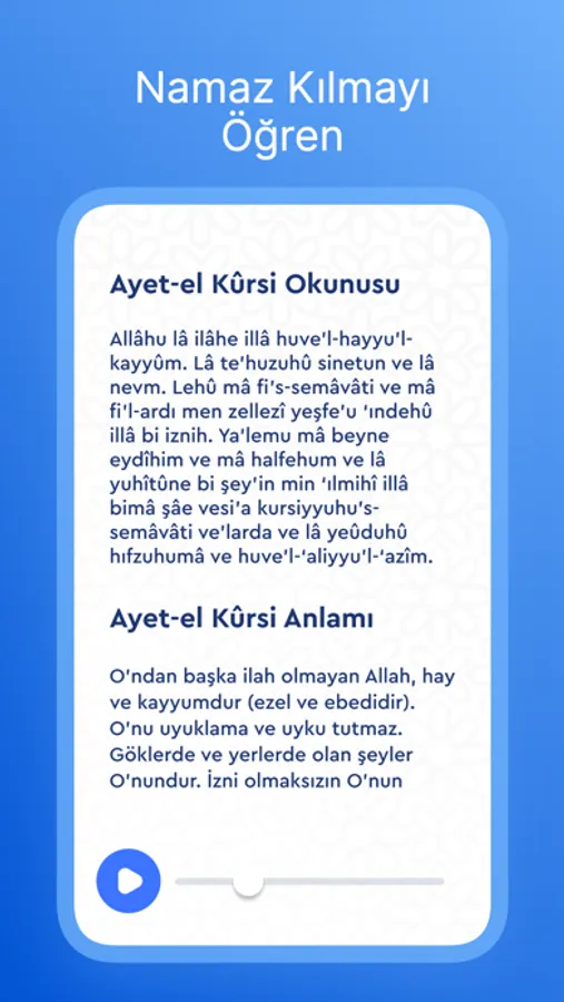 Namaz Surelerini ve Dualarını Hem anlamları hem okunuşları ile birlikte dinleyerek kolayca ezberleyebilirsiniz.