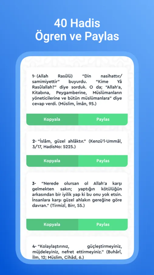 Hz. Muhammed'in en değerli 40 hadisini sevdiklerinizle paylaşabilir veya kopyalayıp istediğiniz yerde paylaşabilirsiniz.
