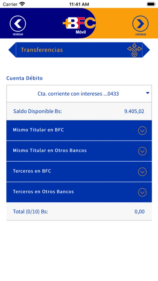 . Transfiera entre cuentas propias y a terceros en divisas (Dólar/Euro)