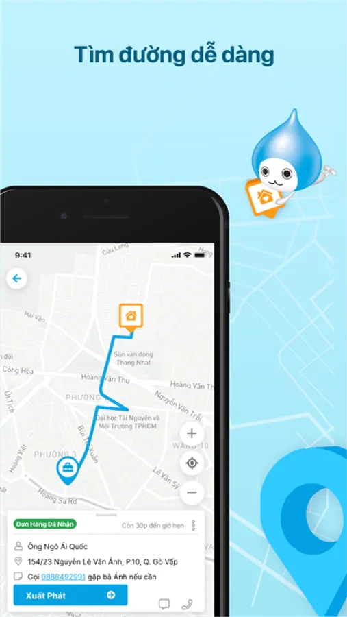 - Bản đồ hiển thị vị trí của khách hàng và kỹ thuật viên.